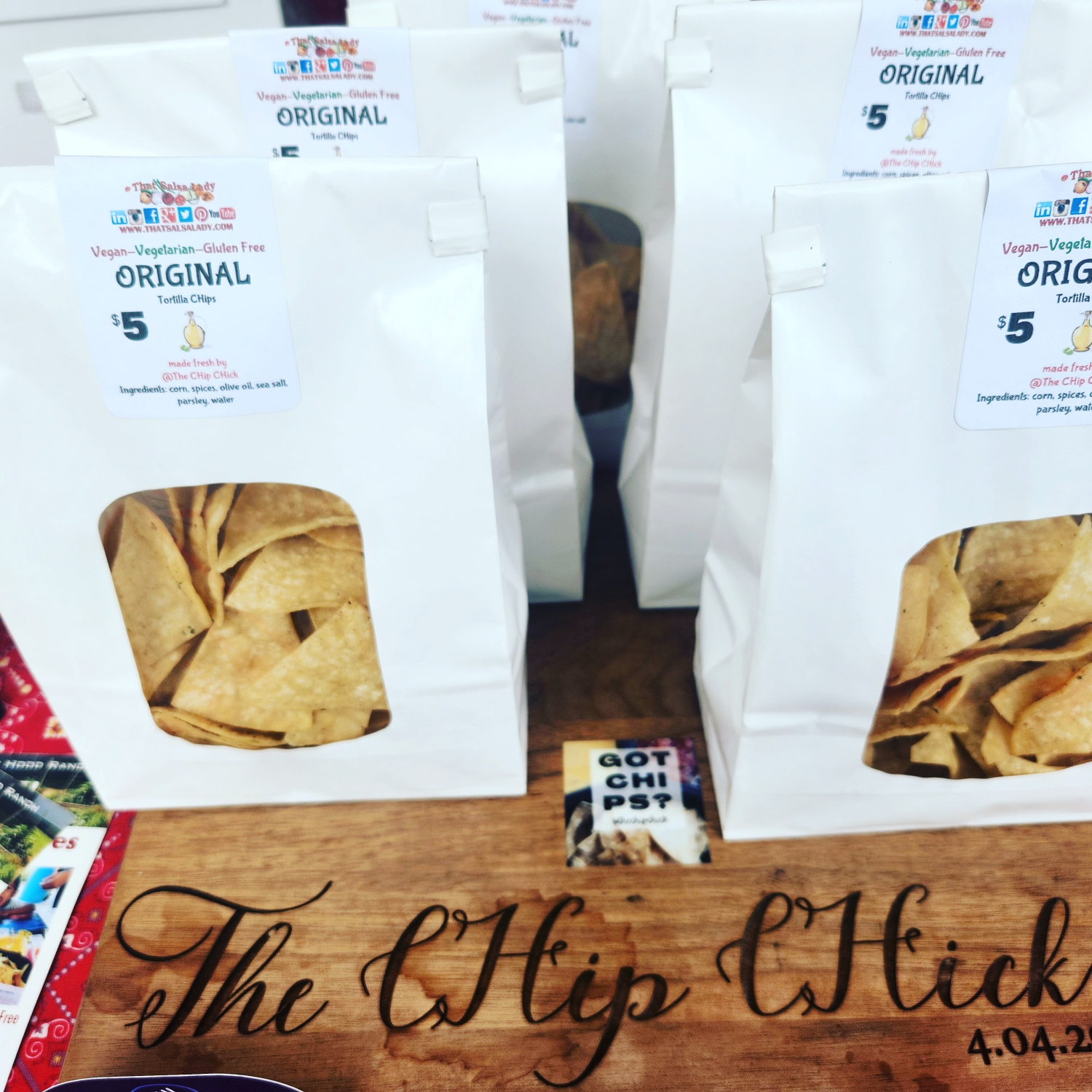 I'm in love with these window bags and enjoy baking and surprising a neighbor or friend with an unexpected treat. Get yourself a personalized embossed and use round little silver foil which you can emboss and put on the back of package.